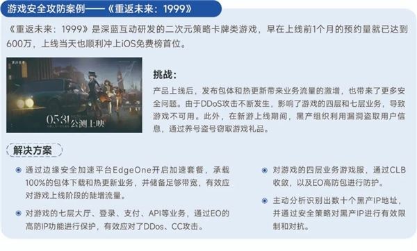 相关数据显示,游戏行业是DDoS攻击发生最为集中的行业,往往在公测期间便会引起黑客的关注,在上线期间攻击可能达到峰值,而这一时期是产品发展的关键阶段,留给企业解决问题的时间并不多,一旦在此期间服务器被黑客成功入侵,将会遭受严重的损失。