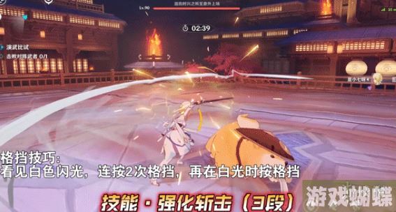 格挡技巧:跳起来后,看见白色为闪光特效,再格挡。一共有5段。