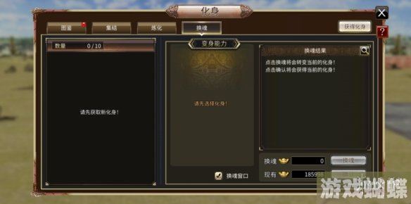 化身换魂界面显示的化身,获得后会先收到换魂匣,途径包括:九州化身录、活动元宝抽取、炼化或是使用化魂卡。换魂匣最多保管10个化身,达到数量上限会阻止获得化身。换魂品阶的化身已全部解锁,获得不会进入换魂匣,直接转换成幻符(当前已在换魂匣内的化身不受影响)。换魂将转变选取的化身,随机变成相同品阶的化身,没有次数限制,但会逐渐提高花费(换魂5次以上价格固定)。确认将获得并解锁选取的化身,若依解锁该化身则会转换成相同品阶的幻符。