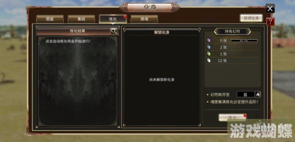化身炼化每次需要消耗10张相同品阶的幻符,有概率获得相同或是更高品阶的化身。炼化会自动消耗材料执行,直到幻符数量不足或是未能合出新化身为止。炼化有魂匣的品阶,没有触发提升品阶时会累积1点魂匣值,若触发提升品阶则会清空当前的魂匣值。炼化魂匣集满后,下次执行必定触发提升品阶。