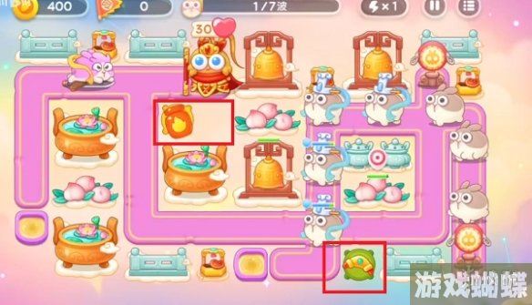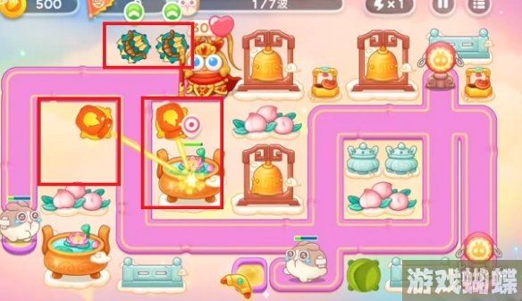 4、到达第三波之后就是一边进行兔子的清理,一边去清理剩余的道具,接着继续加炮塔。