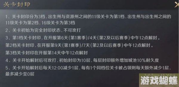 1.对关键战略点例如州府等进行封印限制,需要到达一定时间后方可解锁。