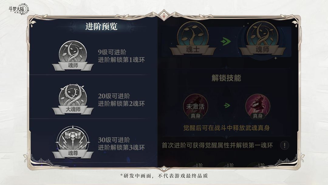 魂师在进阶时要消耗大量的材料,材料主要通过主线关卡挑战获取,在卡关时优先从这一方面入手,保证魂师处于当前最高品阶。魂师在进阶后除了可提升等级上限,还可解锁魂环,因此进阶是我们开荒阶段的最高优先级。