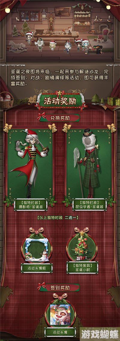 —— 活动代币“圣诞青枝”可在活动商城中兑换【独特时装】摄影师-圣诞装、【独特时装】昆虫学者-圣诞装(二选一)等丰厚奖励。