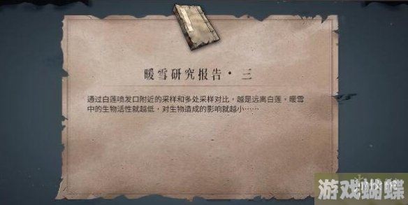 以上就是关于暖雪手游研究报告怎么获得的全部内容了,希望能够帮助到各位玩家。更多游戏相关的内容各位玩家们可以关注游戏蝴蝶,会一直给各位玩家们带来手游攻略!