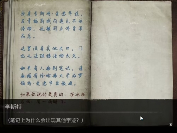 而于此同时,日记上出现了陌生的文字,这是来自于未来的信息,而游戏的关键”笔录”,也在此点题。