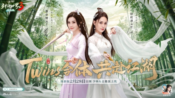 而且剑侠IP玩家应该会有印象,阿Sa蔡卓妍就曾出演过2010年《剑侠情缘之藏剑山庄》中的唐小婉,可以说双方也算缘分深厚。这次,Twins古装合体,双剑合璧,在剑侠江湖上演全新奇遇,也可以说是再续前缘了。