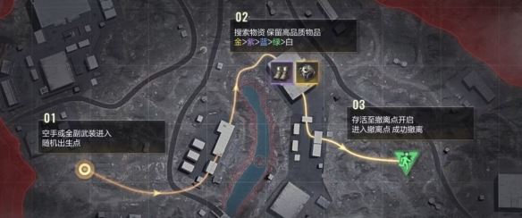 与传统的吃鸡游戏不同,《超凡先锋》没有跳伞环节,玩家入场时会随机被分配在战场中,尽可能地搜刮场地物资,然后前往安全点全身而退。
