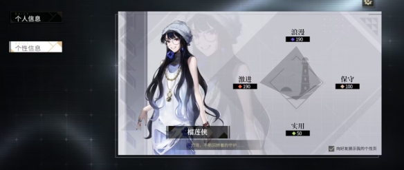 不过值得一提的是游戏中会出现一些影响后续剧情的选项,虽然剧情的大方向改变不了,但还是会影响玩家们的个性值,个性值达到一定会解锁主角的不同立绘,虽然大部分时间主角都是背景板只在剧情里出现,但总的来说这个系统也比较有趣。